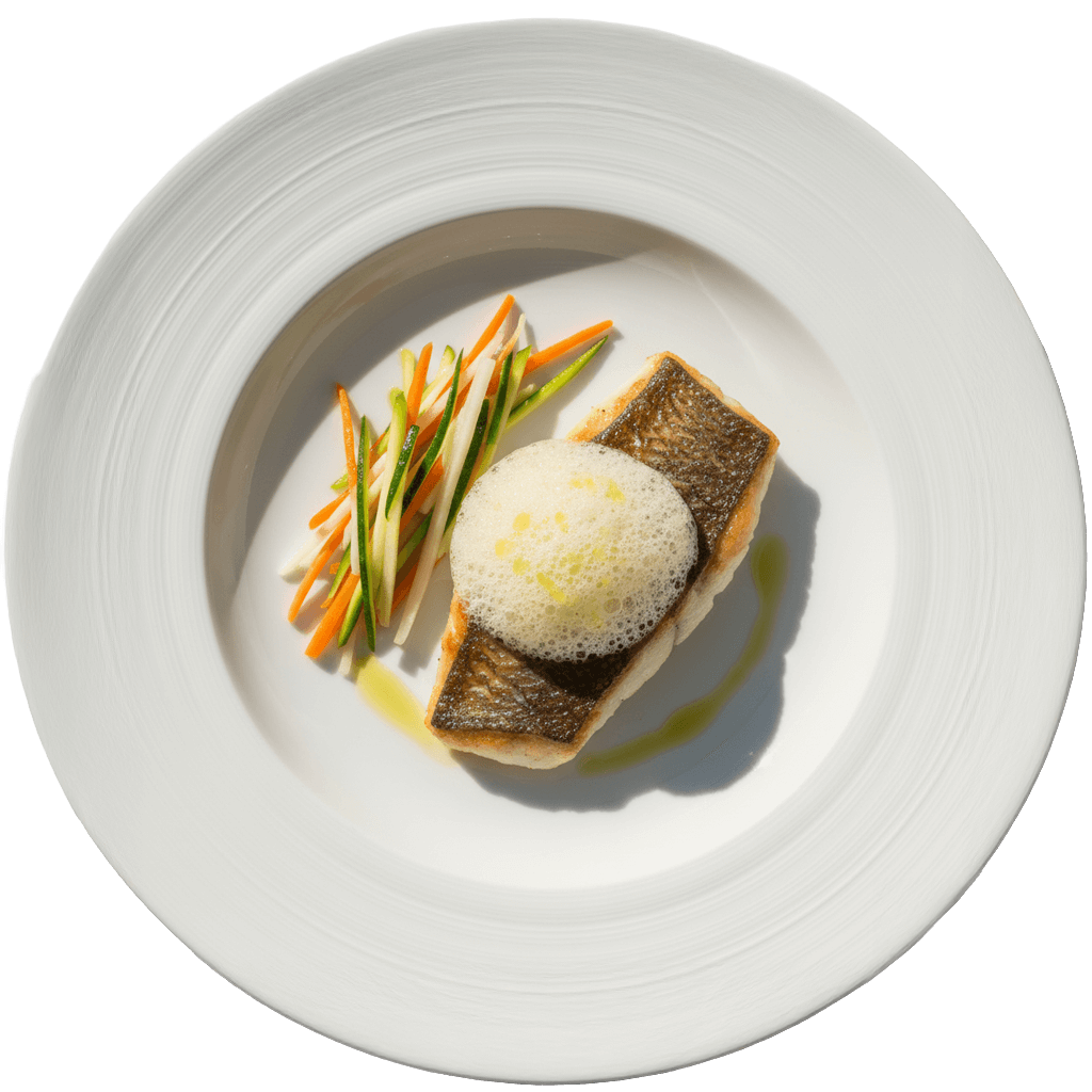 Filet de bar rôti, écume d’agrumes et julienne de légumes croquants.