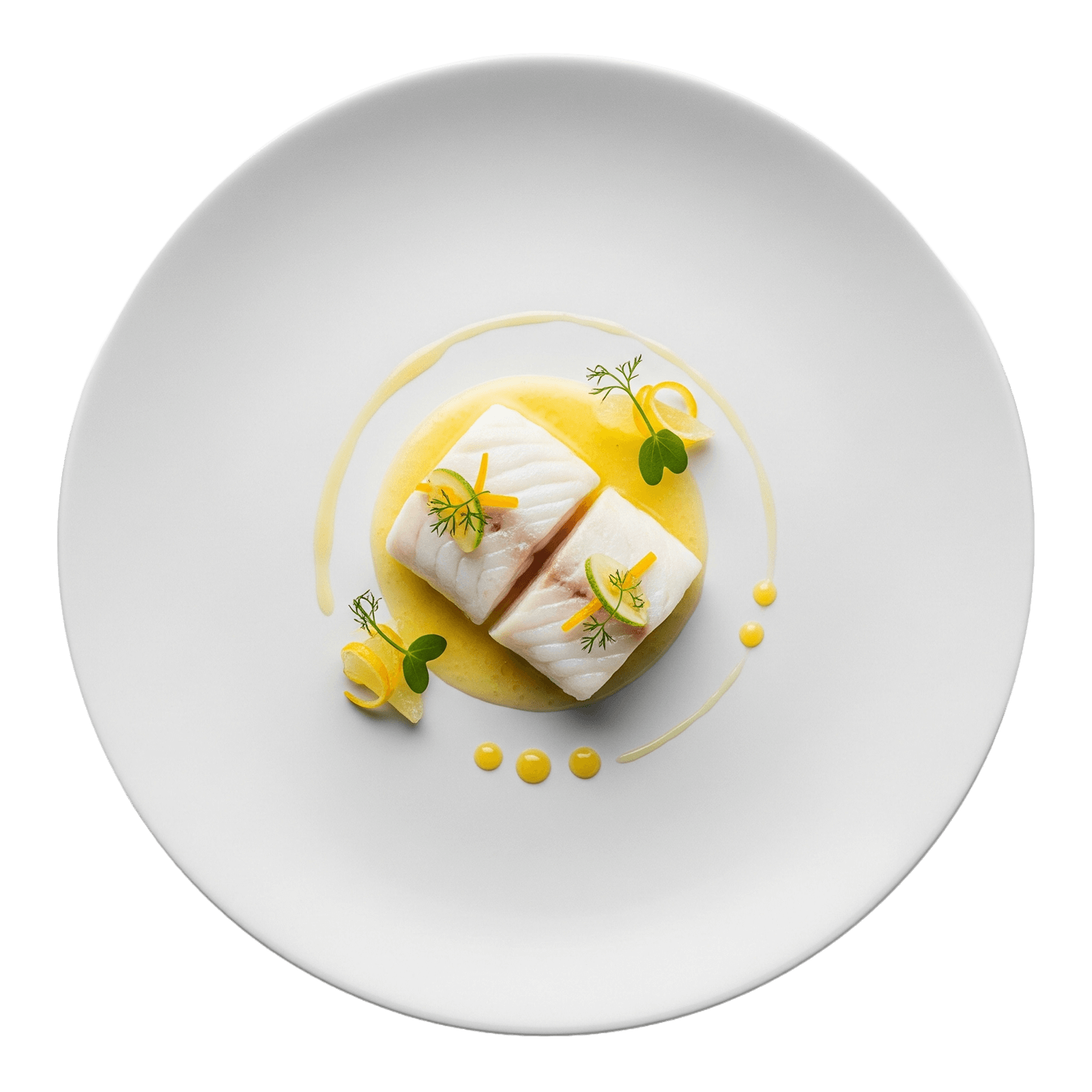 Bar de ligne en croûte de sel avec une sauce au beurre blanc citronné.